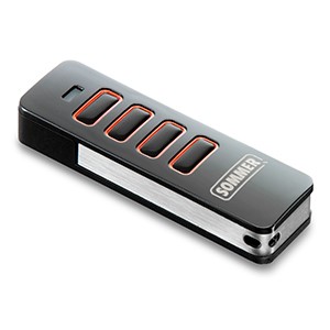 Idealne rozwiązanie dla bram przemysłowych, z podświetlanymi przyciskami, umożliwia sterowanie 100 bram (otwieranie i zamykanie wybranej bramy) daje to ok 200 poleceń, odporny na warunki atmosferyczne, możliwość zamontowania wewnątrz jak i na zewnątrz budynku. zasilany baterią, zasięg ok 50m.